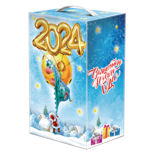 Сладкий новогодний подарок с драконом и воздушными шариками станет незабываемым сюрпризом для детей и украсит любой новогодний праздник дома или на утреннике. Дракон с радостью и легкостью улетает на воздушных шариках в Новый 2024 год, чего мы желаем и Вам!