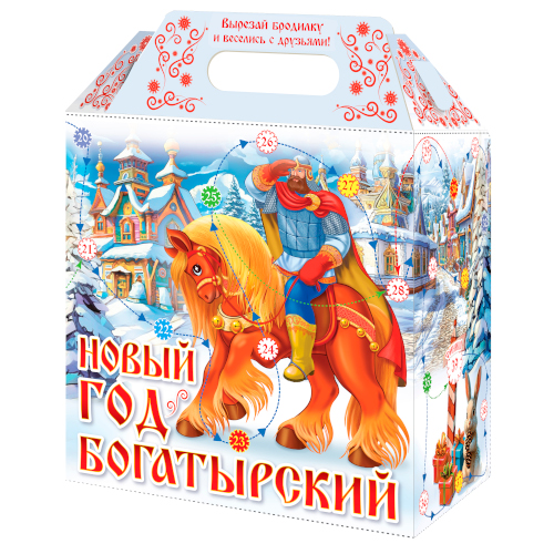 Подарите своим родным, друзьям и коллегам сладкий новогодний подарок «Конь богатырский» — яркую визитную карточку русской культуры. Яркая картонная упаковка сочетает традиционные русские мотивы с живописным изображением богатыря верхом на могучем рыжем коне. Образ героизма и стойкости вплетён в современную концепцию подарка, наполнив его глубокой духовностью и добротой. Кроме того, разложив и разрезав упаковку, легко можно получить новогоднюю игру-бродилку и весело провести праздничное время вместе с близкими. Сюрприз внутри каждого подарка - игрушка тянучка гусь антистресс - компактная, приятная и гладкая на ощупь, до 9 см в длину, выполнена из технологичного и безопасного материала.