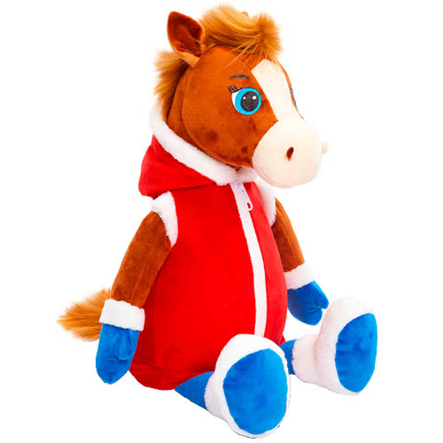 Сладкий новогодний подарок «Буранчик» - необыкновенно обаятельный подарок в мягкой игрушке в виде стильной лошадки, одетой в шикарную меховую жилетку.