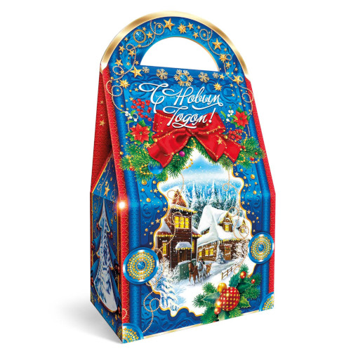 Огромное количество всевозможных сладостей (их общий вес 1200 гр.), которые не оставят Ваших детей равнодушными. Там они найдут и Хрутку и Cникерс, и Красную шапочку, и Аленку, драже, батончики, десерт и еще множество других не менее популярных кондитерских изделий для Вас и Ваших ребятишек. Все это великолепие поместилось в презентабельную новогоднюю упаковку с очень красивым блеском из-за отделки металлиизация.