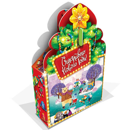 «Ёлка» - потрясающий сладкий новогодний подарок для Ваших детей. Огромное количество всевозможных сладостей (их общий вес 1200 гр.), которые не оставят Ваших детей равнодушными. Там они найдут и Несквик и Cникерс, и Красную шапочку, и Аленку, драже, батончики, десерт и еще множество других не менее популярных кондитерских изделий для Вас и Ваших ребятишек. Все это великолепие поместилось в красивую новогоднюю упаковку из плотного картона высотой 34см. Веселый Дед Мороз, красочная Ёлка, каток с веселыми зверюшками. Такой подарок никого не оставит равнодушным.