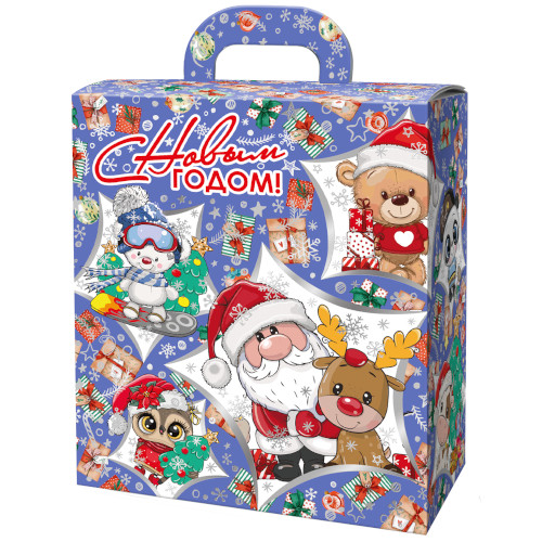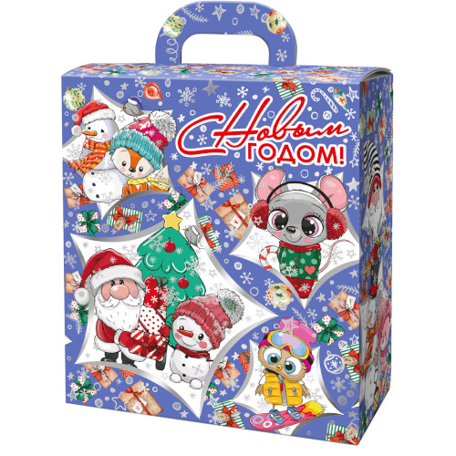 Волшебный подарок с милыми новогодними героями. Этот очаровательный дизайн с тиснением серебряной фольгой непременно вызовет улыбку на лицах ваших близких. Внутри вы найдете множество вкусных конфет, а также магнит привлекательного дизайна, который обязательно порадует Вашего ребенка.